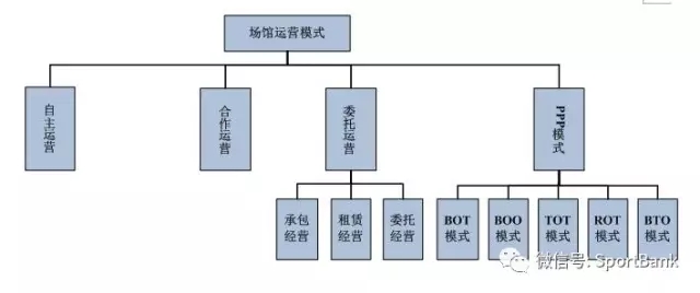 《体育发展“十三五”规划》提出要探索大型体育场馆所有权与经营权分离,为体育场馆的创新运营提供了政策支持基础。由此发展出多类政府和社会资本合作的体育场馆运营模式。除了在场馆投资建设模式中阐述的BOT、BOO之外,还有TOT、ROT等PPP模式。PPP模式中场馆的运营主体多为项目公司,项目公司往往由政府和社会资本和政府共同出资成立。