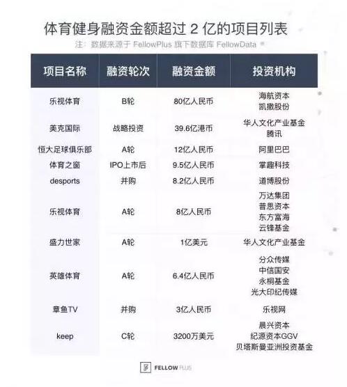 除了传统的VC/PE投资机构外,不少非体育行业的上市公司和明星也开始介入体育初创公司的投资。乐视拿到的80亿融资中,凯撒旅游与海航资本通过嘉兴基金分别以6亿元参与了此轮融资;此外中泽文化、中建投信托 、中泰证券等机构都有参与。个人投资者则包括孙红雷、刘涛、陈坤、周迅、贾乃亮、陈思诚、王宝强等当红明星。