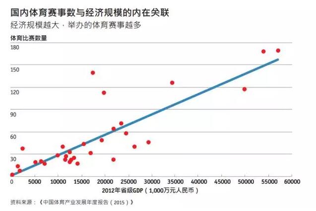 以民众参与热情较高的马拉松为例,2015年注册备案的相关赛事达到134场,较2014年增加83场,增幅超过160%。2016年,全国马拉松赛事数量和参赛人数实现井喷式增长,注册备案的马拉松及相关运动赛事达到了328场,280万参赛总人次创造了历史新高。体育赛事数量增加表明一国经济越发达、人民越富裕,参与体育运动的热情越高涨,越加愿意将可支配收入投入体育运动中。