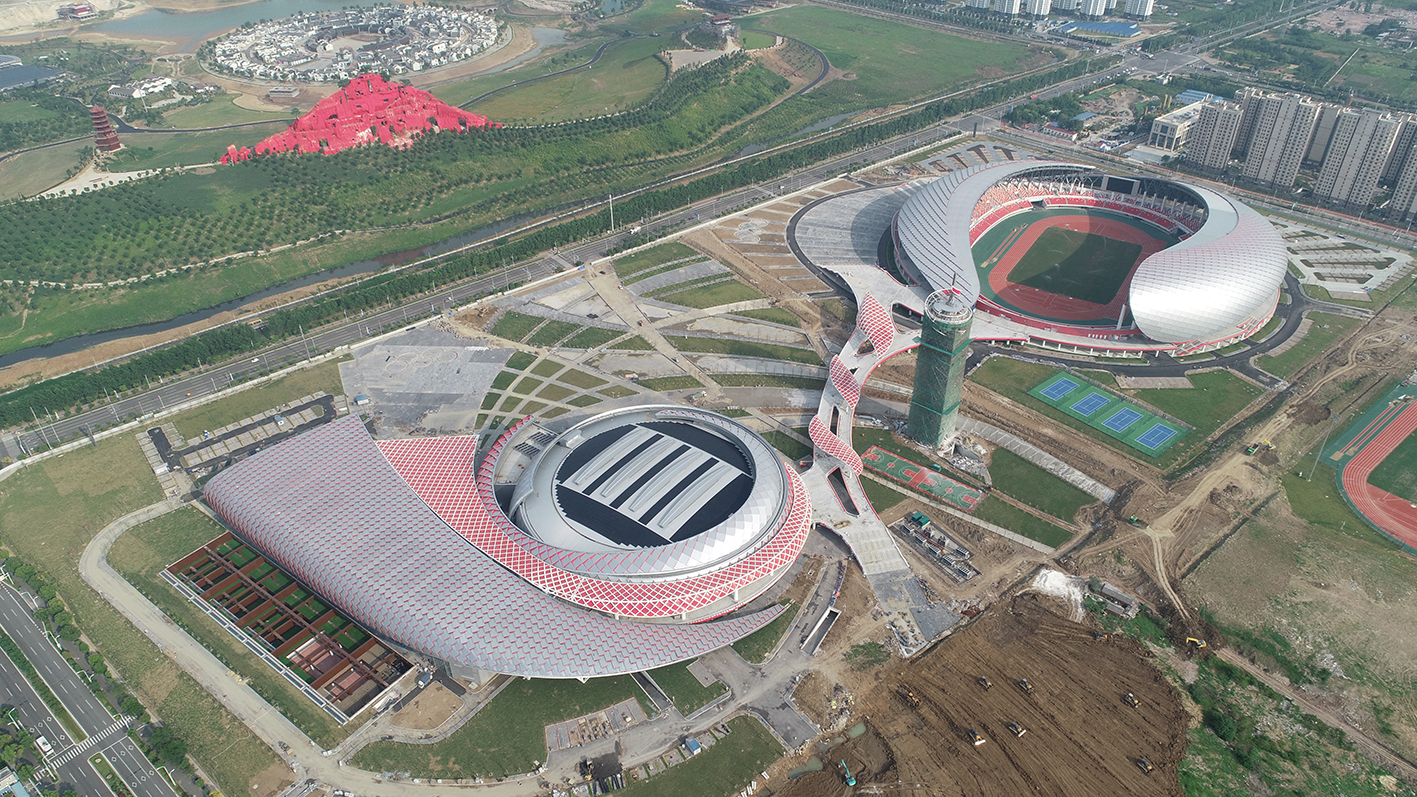 蚌埠奥体中心占地面积514亩,总建筑面积14.4万㎡。建成后将成为2018年 安徽省第十四届运动会举办的主要场馆, 主体建筑包括“两馆一场”:体育场、体育馆、多功能馆以及一个体育学校和一个景观塔,从南到北整合并列一体化设计。